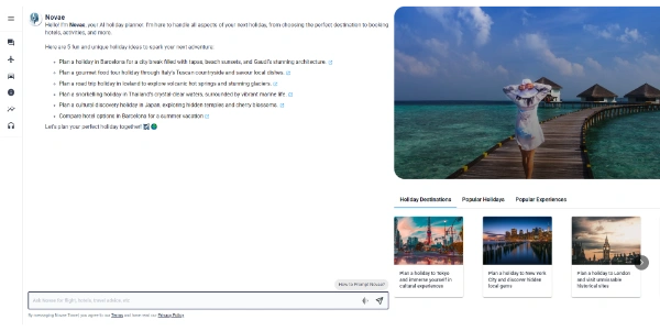 Feature rich AI holiday planner with flights, hotels and attractions/tours bookings, budgets, driving and public transport directions, and location-based services