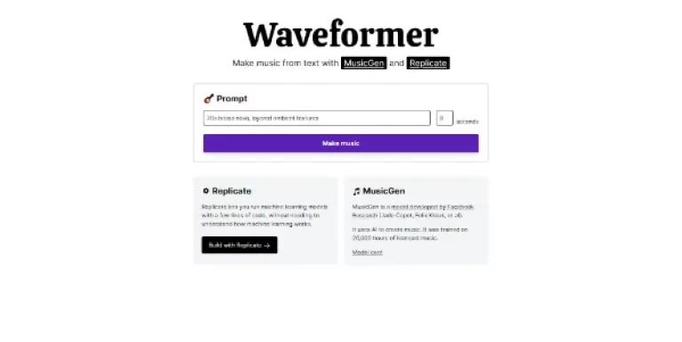 A music generator that works from a text prompt thanks to MusicGen and Replicate